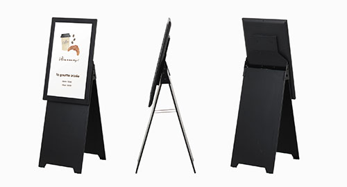鈴木さん 24 インチの電子POPです。再生機能付きで